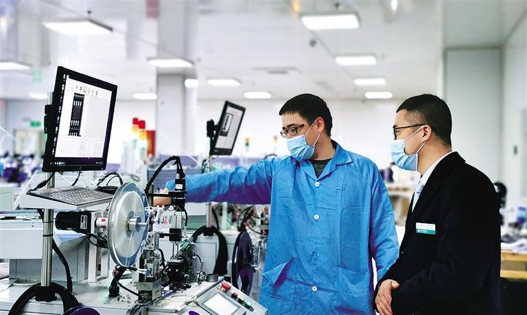 今年以来,中国农业银行加大助企纾困支持力度,截至3月底,普惠型小微企业贷款余额1.6万亿元,新增2799亿元,增速21.2%;贷款户232万户,新增41万户。图为浙江浦江县的锋华创芯微电子有限公司的生产车间,当地农行工作人员现场了解外贸企业出口情况,帮助企业解决融资难题。