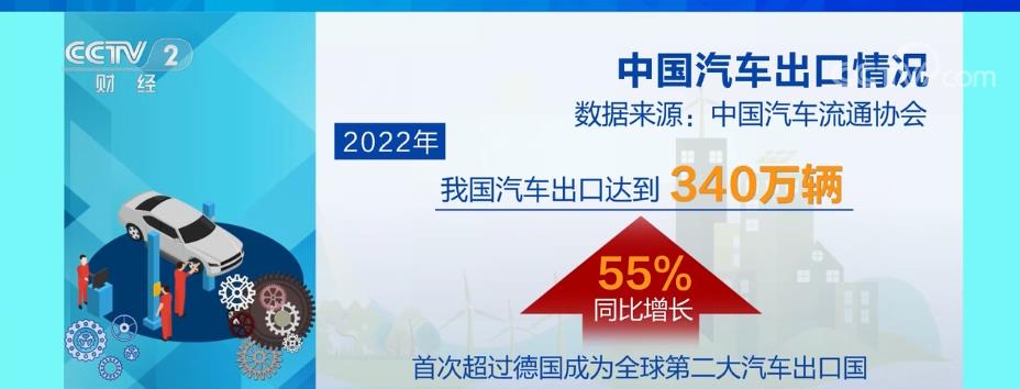 数据显示,2022年,我国汽车出口达到340万辆,同比增长55%,首次超过德国成为全球第二大汽车出口国。其中,新能源汽车出口112万辆,同比增长190%,占汽车出口总量的33%。今年1—2月,我国汽车出口达68.2万辆,同比增长43.2%。业内人士预计,今年汽车出口将延续强势增长态势。