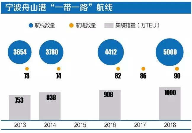▲舟山港2013-2018年“一带一路”航线运行情况(来源:21世纪经济报道)