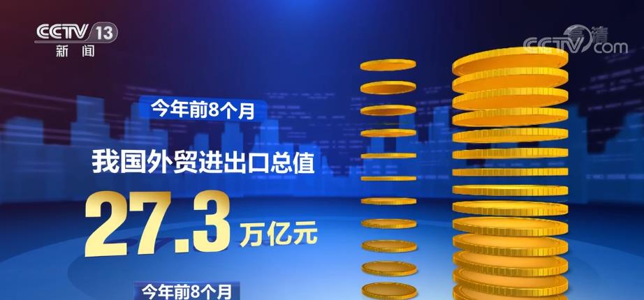 央视网消息:海关总署9月7日公布,今年前8个月,我国外贸进出口总值实现稳定增长。