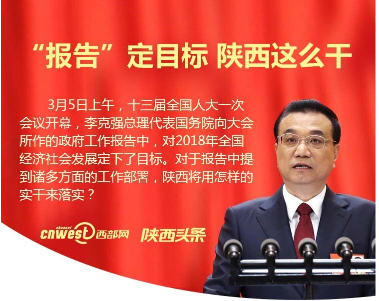 3月5日上午,十三届全国人大一次会议开幕,李克强总理代表国务院向大会所作的政府工作报告中,对2018年全国经济社会发展定下了目标。对于报告中提到诸多方面的工作部署,陕西将用怎样的实干来落实?