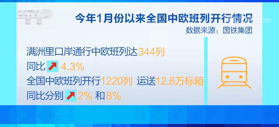 截至1月27日,霍尔果斯口岸中欧班列货运量达67.90万吨,同比增长18.93%。满洲里口岸通行中欧班列达344列,同比增长4.3%。全国中欧班列开行1220列、运送12.6万标箱,同比分别增长2%和8%。
