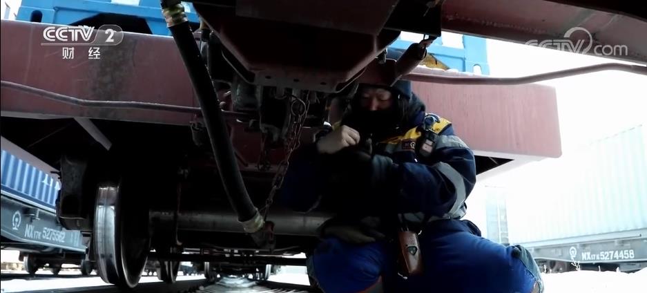换装完毕后,调车员李冬开始对即将转场的班列进行编组作业,由于中欧班列运行比普通列车速度快、路程远,他们需要对车辆状态进行更加细致的检查。